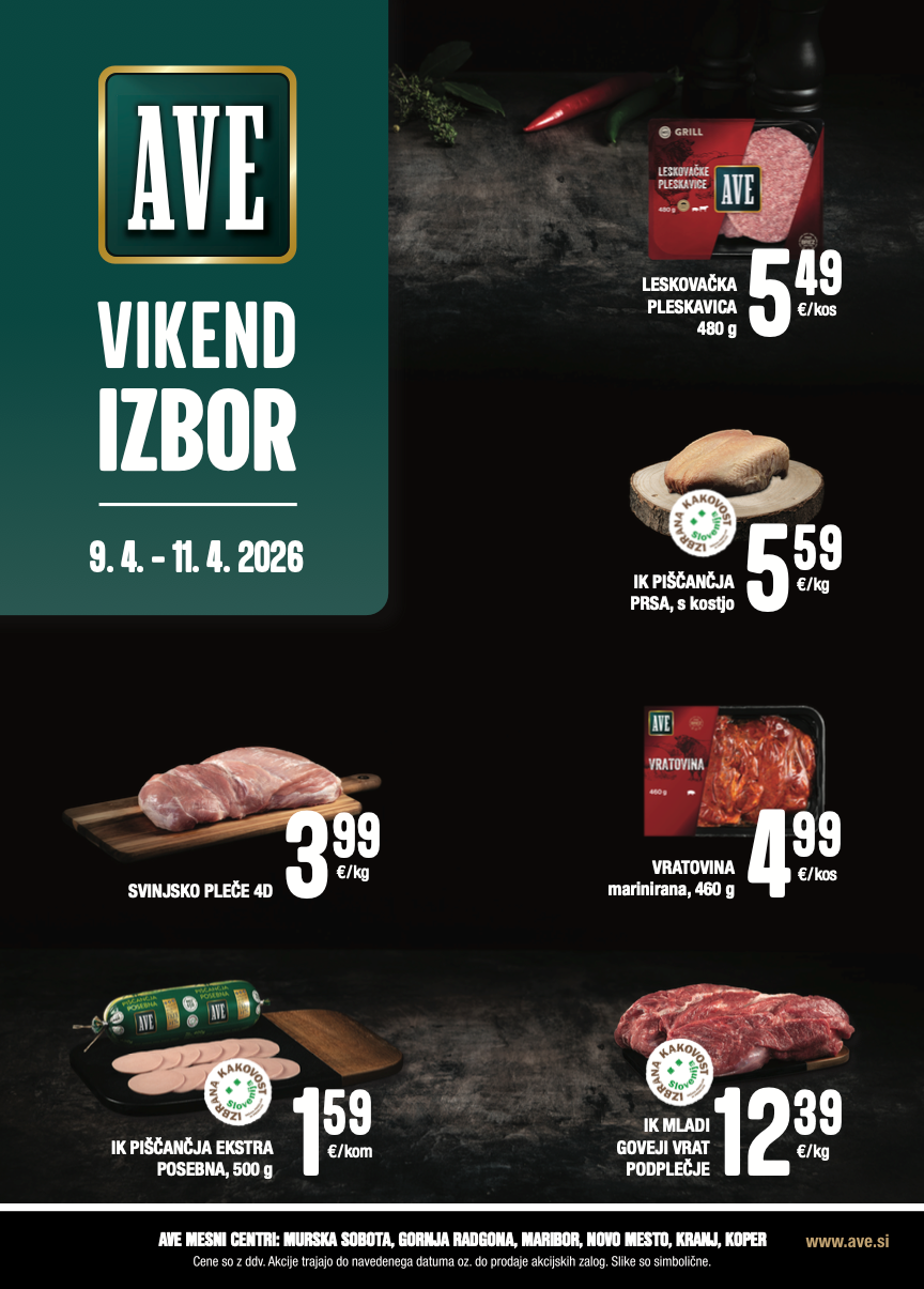 AVE vikend izbor, 9.4. - 11.4.2026