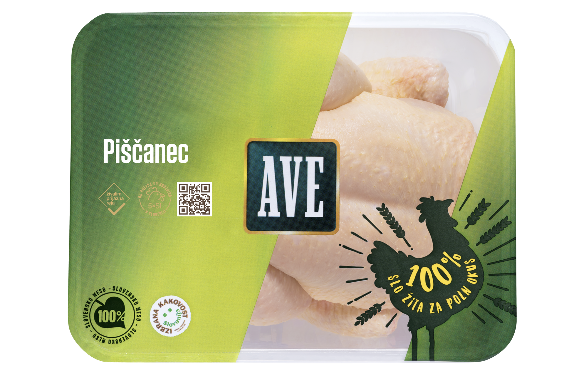 100% slovenski piščanec, 100% slovenska žita v krmi. Popoln nadzor in kratke poti pomenijo bogat okus in zagotovljeno svežino. Naj bo to piknik, kosilo za domačo mizo ali pa velika nedeljska pojedina – AVE piščanec je prvi izbranec!