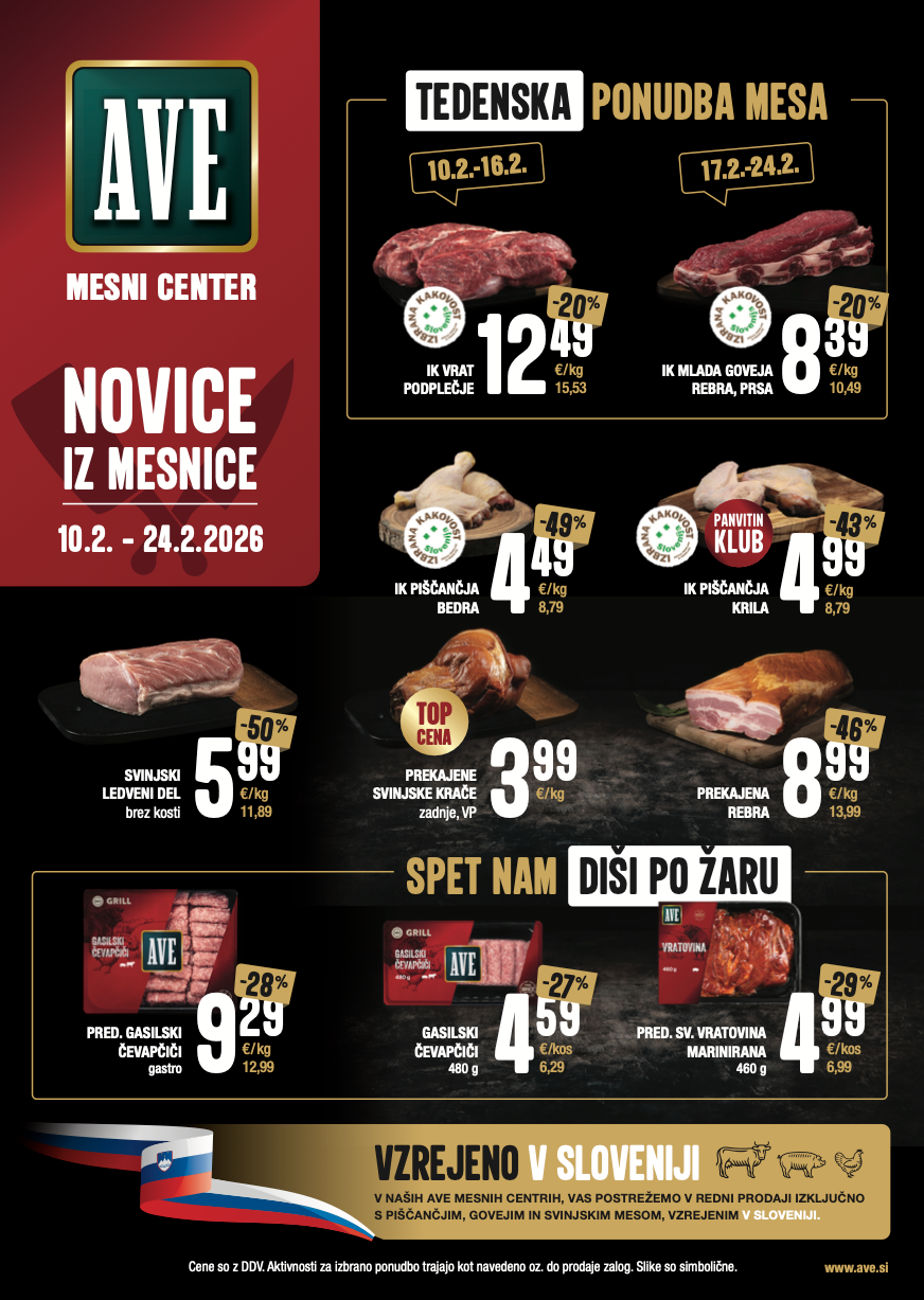 Z velikim ponosom sporočamo, da je Panvita na letošnjem mednarodnem kmetijsko-živilskem sejmu AGRA 2025 ponovno potrdila svojo vodilno vlogo v kakovosti mesnih izdelkov. Na prestižnem ocenjevanju smo prejeli kar tri nazive ŠAMPION in pet zlatih medalj za izdelke blagovne znamke AVE. Šampionski izdelki AVE Na najvišjo stopničko so se letos povzpeli: AVE Leskovačka pleskavica AVE Piščančji gyros AVE Piščančji kebab Naziv šampion prejmejo izdelki, ki tri leta zaporedoma osvojijo zlato medaljo, kar potrjuje njihovo izjemno in trajno kakovost. Šampionski naziv je najvišje priznanje v panogi in odraz predanosti, inovativnosti ter visoke strokovnosti naše ekipe. Pet zlatih medalj za AVE Poleg šampionskih nazivov so zlato odličje prejeli še naslednji AVE izdelki: AVE hitri stejk AVE začinjena svinjska vratovina AVE medena rebrca AVE piščančja začinjena krila Linija AVE domači premium piščanec (bedra, krače, krila in stegna file) Vsaka zlata medalja je rezultat nenehnega vlaganja v razvoj, skrbno izbranih slovenskih surovin in tesnega sodelovanja z lokalnimi rejci. Neodvisne strokovne komisije so tudi letos prepoznale izjemen okus, teksturo in kakovost naših izdelkov, ki so plod lastne vertikalne verige in skrbno nadzorovane pridelave. Potrditev kakovosti in zavezanosti kupcem Prejeta priznanja so dokaz, da v Panviti dosledno sledimo najvišjim standardom kakovosti, varnosti in trajnosti. Naše poslanstvo je zagotavljati varno, okusno in lokalno pridelano hrano, ki jo cenijo tako strokovnjaki kot potrošniki. S tem utrjujemo zaupanje kupcev in partnerjev ter postavljamo nova merila v slovenski živilsko-predelovalni industriji. Iskrene čestitke in zahvala vsem sodelavcem, ki so s svojim znanjem, predanostjo in inovativnostjo prispevali k temu izjemnemu uspehu. Skupaj ustvarjamo kakovost, ki ji zaupate.